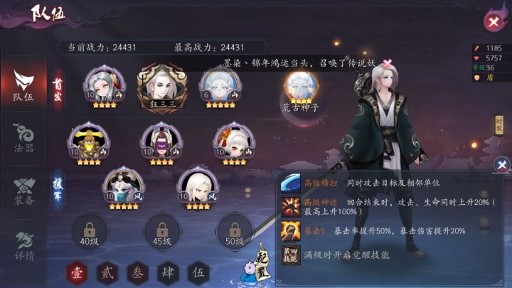 阵容法宝如上。 现在有鸿蒙晶石可以换个传说。 该上哪几个妖灵。主角吃什么🤔。 主角在吃一个相同的也会变成5星吗