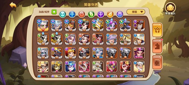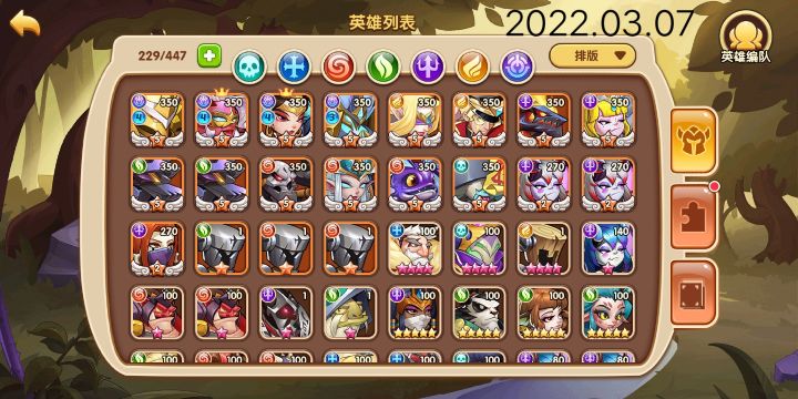 终于7时空了。为了给会里其他人做时空共斗,这次置换了一些用不上的时空。周四换回来。零氪还是缺狗粮,很多英雄有本体但是没狗粮做