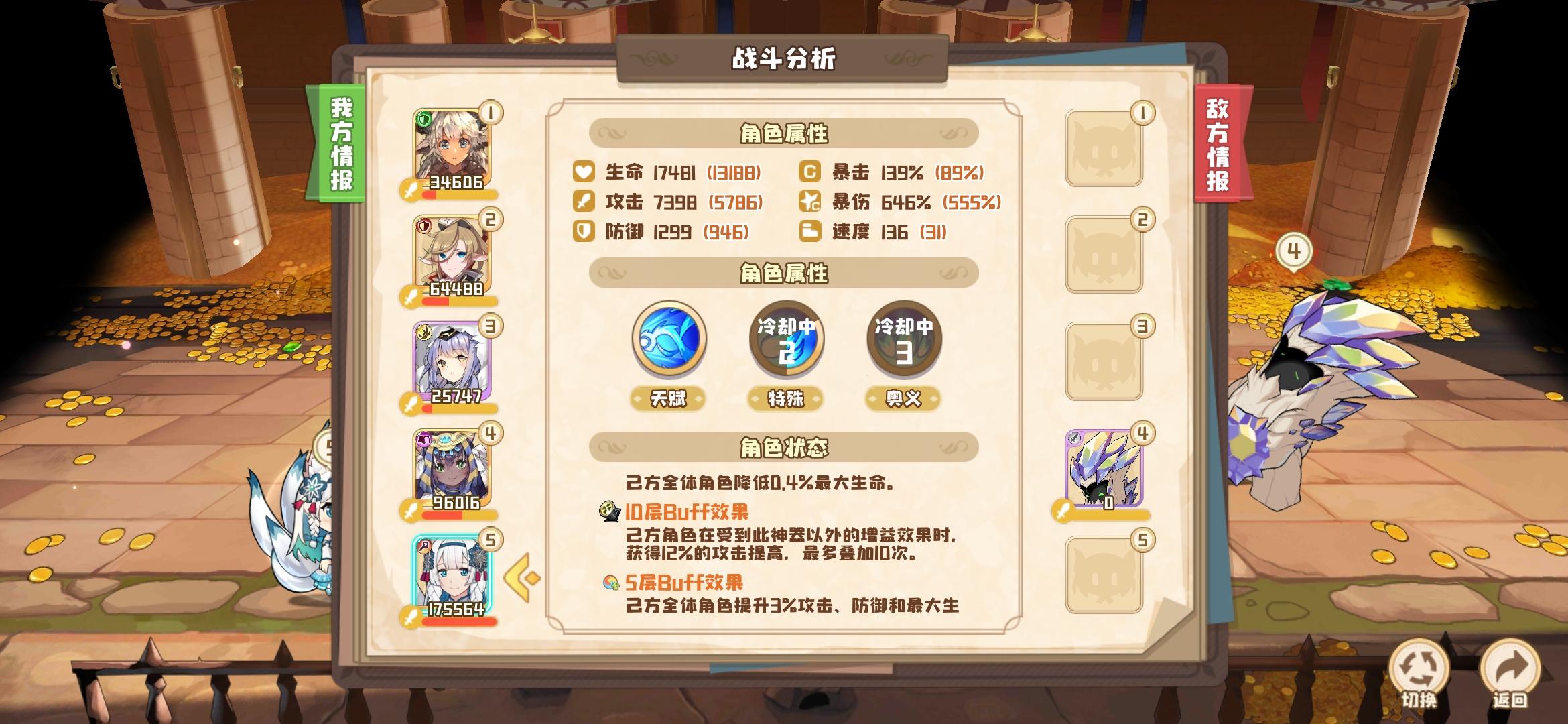 世界树结算了,6w多琥珀该怎么用的呢当然是可爱的看板娘啦(不是)当然是换剧照啦,宿敌1+2以莉莉为例:莉莉虽然大招控制强,但初始和冷却都是三回合带上宿敌1,在度过第一回合准备期,甚至能和点了一回合技能树的蝴蝶同时开出大招而且宿敌2,60热度能让莉莉接着在第三回合又一次开出大招(部分情况下第四回合热度满了又能开出一次)实战困难8-2,原本第三回合前排都会死完,现在能明显提高生存,甚至