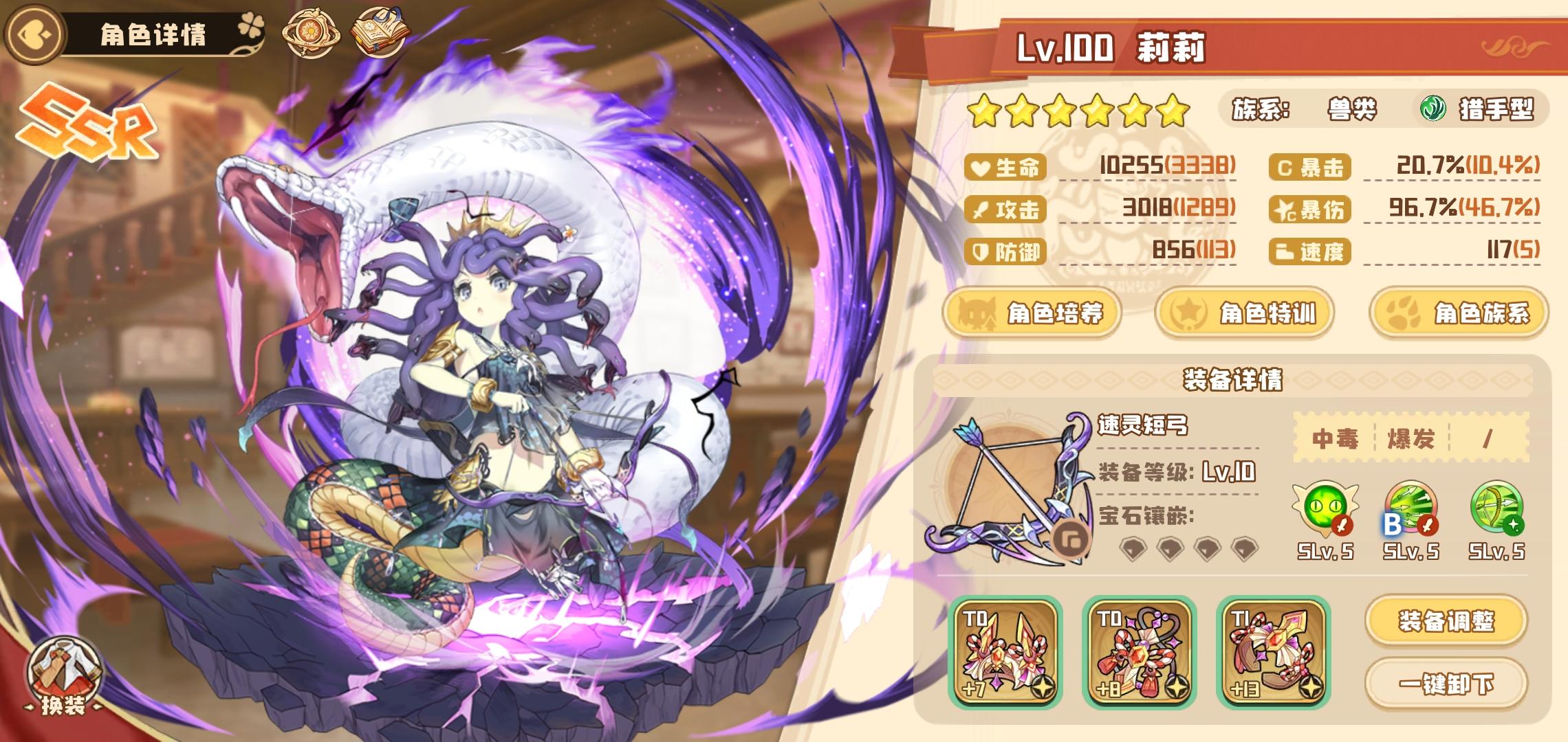 😆终于把莉莉肝满了,等级满,装备充能满,技能升级满,升星满,特训完成😋装备和宝石都是可以换的,所以我基本可以开始培养下一位了
