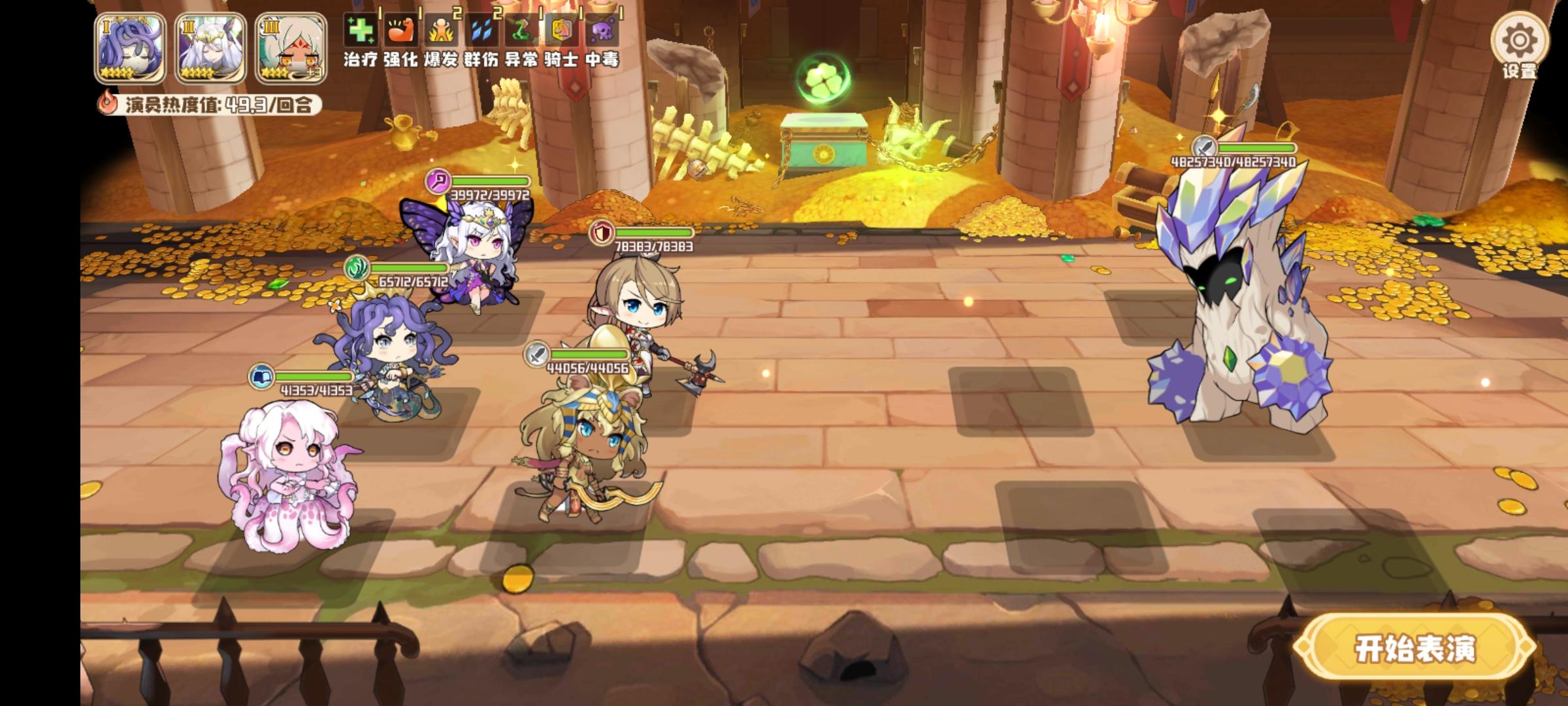 前排乐极百分之50高效出闪避,出了至少抗两回合,先后死,下午茶三效果怪物后排被石化,狐狸大招减速加百分比燃烧,因为减速效果,莉莉必开大招石化加毒伤百分比,最后偷心收尾,副坦用尼得亚是因为恐惧效果以及速度稳定最低