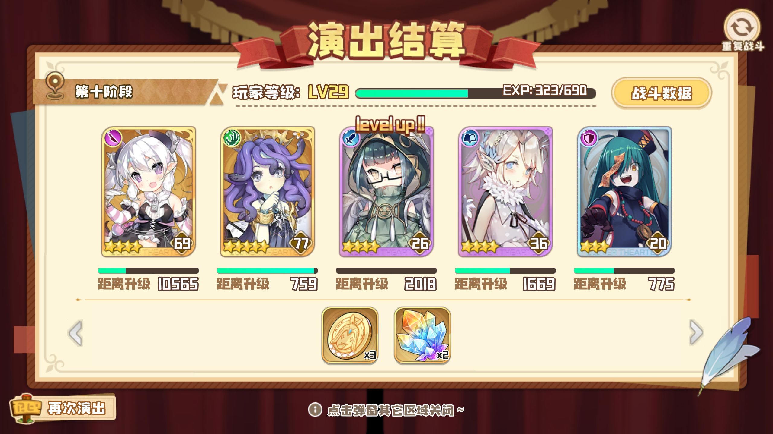 分享一套经验本10打法有巴风特的可以试一下基本不需要练度剧场前两个随便带,最后一个必须织毛衣。还有一点2号位的坦克必须能抗住蘑菇怪两下