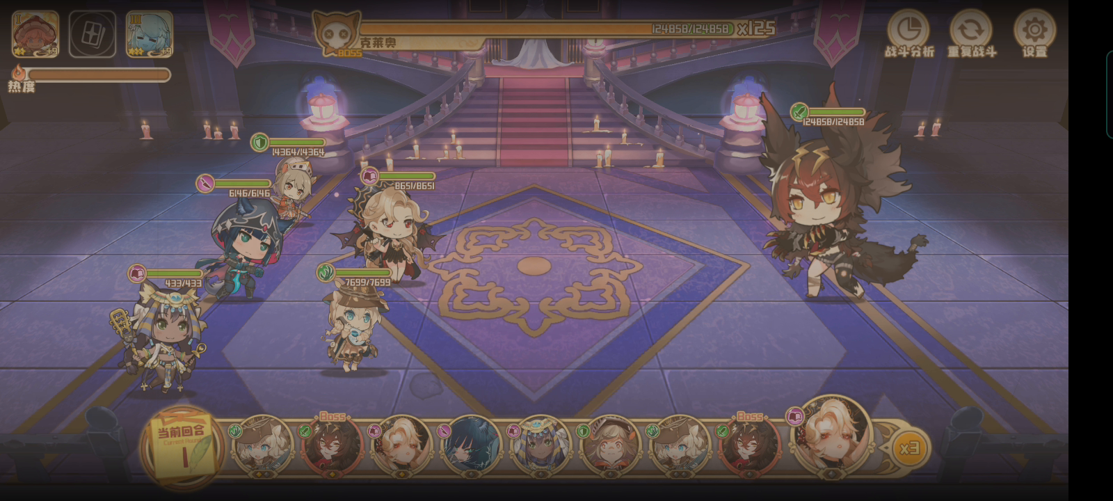 之前在论坛里看到了通用打狗攻略,奈何本人练度实在太过死鱼,反复尝试终于配出了能打过的队伍,姑且发一下核心就是一号位小恶魔抗伤害,巴风特也行,但个人感觉没有小恶魔好用(我的技能数值是巴风特+30%爆伤但是攻击低,小恶魔无视40%防御)然后白放后排提供输出加成和奶小恶魔,我之前为了减少己方流血数目同时上了白和翡翠结果输出不太够招财猫也是放后排提供稳定的输出加成剩下俩位子就放你输出最高的(风系)