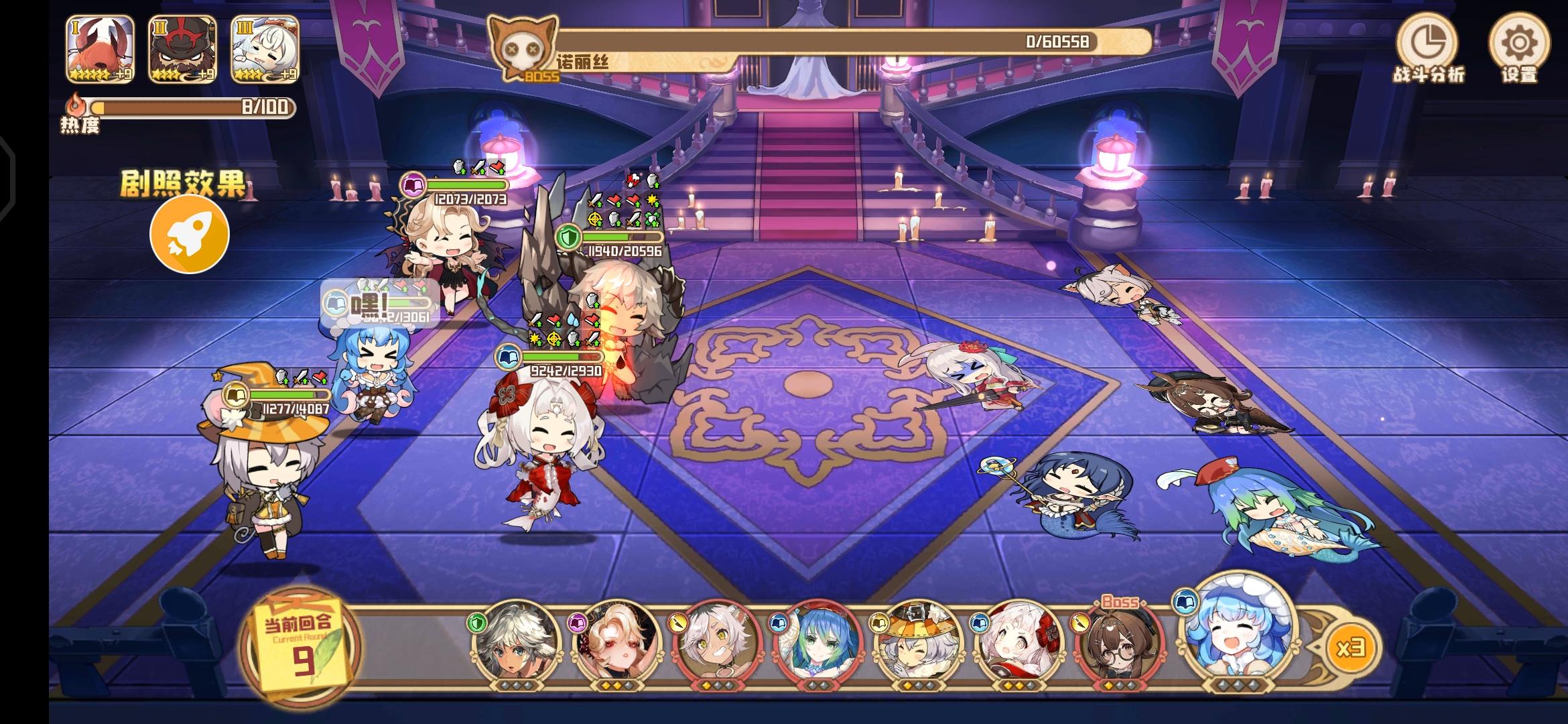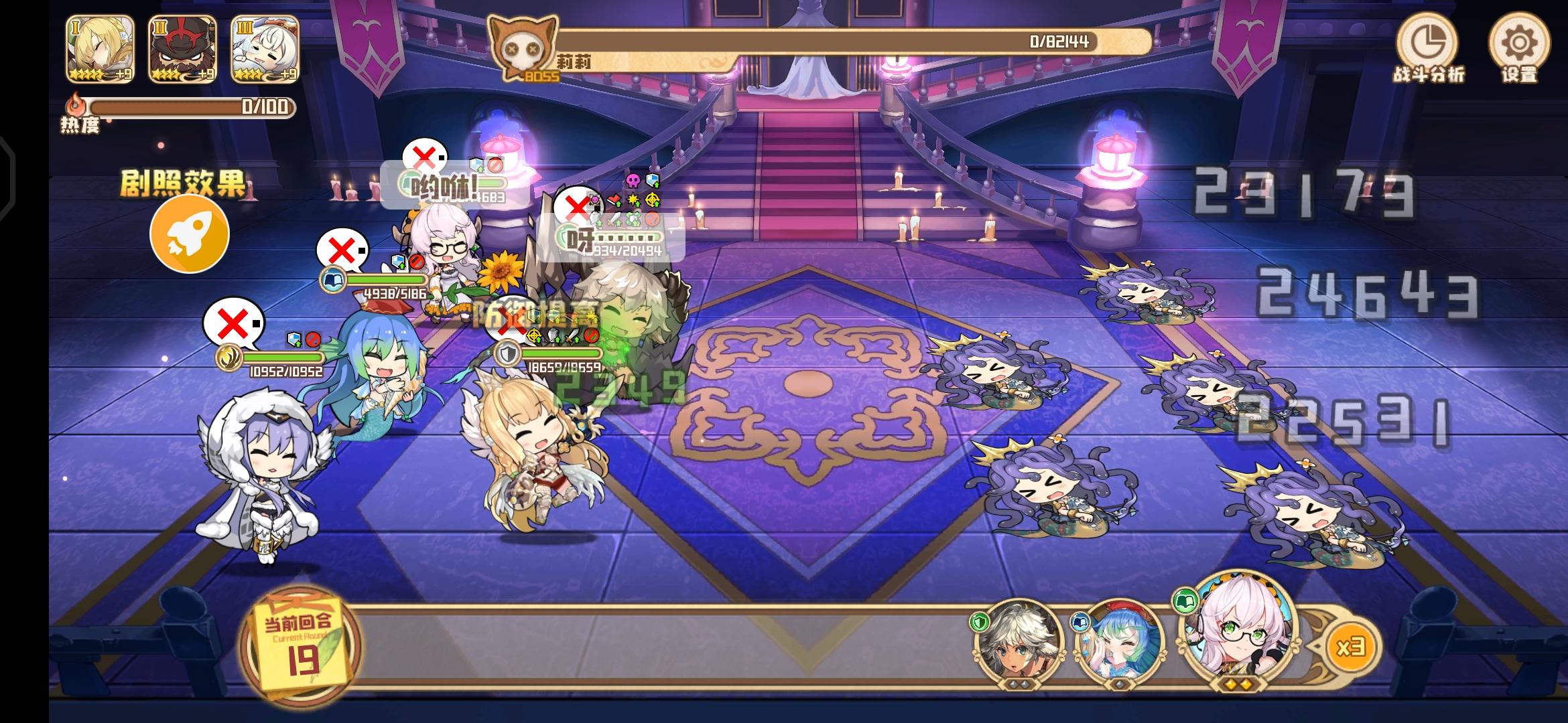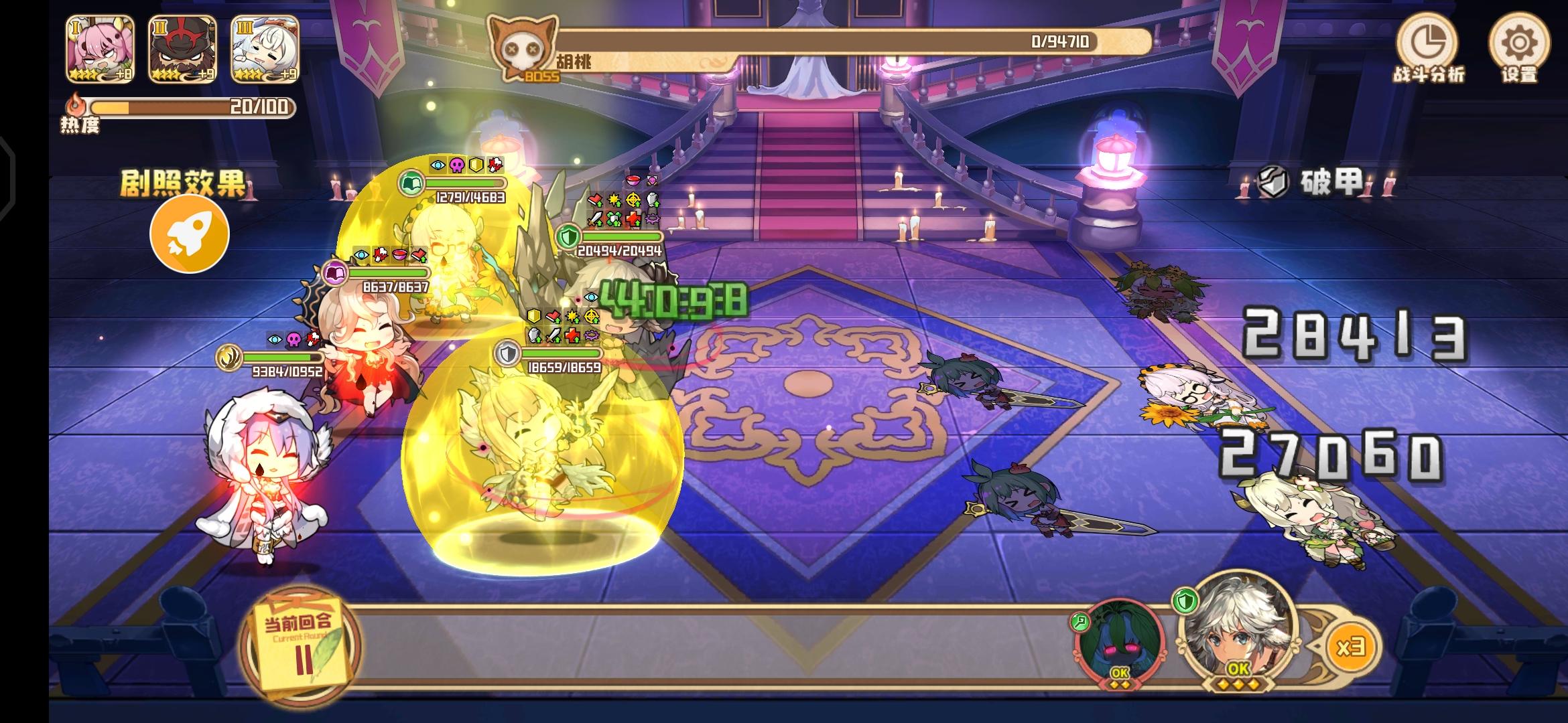这个阵容十分的无敌,第一回合结束就有30%-40%的真伤首先,人偶师的debuff是全体20%真伤加上史莱姆,就是全体30%真伤打底,白鸟带元宵套暴击能有40%第二点,这个阵容因为人偶师加萝卜丁的被动,开局就与全体敌人拉开98速度第三点,萝卜丁35%攻击加上白鸟史莱姆两回合五aoe,伤害很足,打普通一般战斗第一回合两个aoe就结束了第四点,鸟盾的全体护盾打这种本很舒服,加上人偶师减攻,基