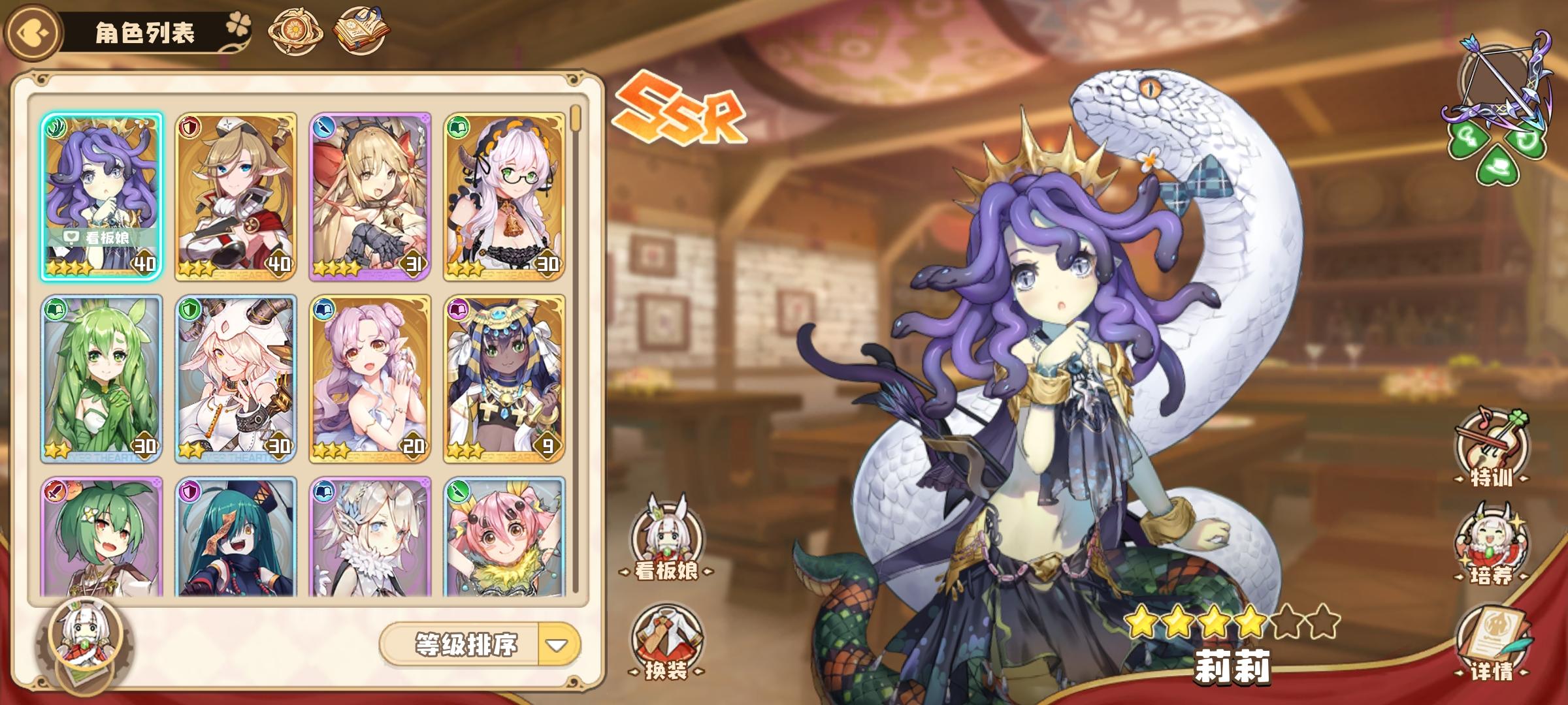 越级过图之王,sl上限无敌,肝帝的快乐源泉。莉莉70多级,其他三个五六十级,还有一个工具人开下午茶3。目前已经推到9-1-4了,经验10金币装备专属9技能8。莉莉+章鱼是开荒的神,上限太可怕1.17中午更:技能9凹连射思路:【重点:第一回合要送掉两个前排,避免对面小怪打出“攻击一列目标”的技能】1.18晚更:一样的,技能10也过了【重点2 狐狸带全肉保证开出大】1.22更新:sl了一