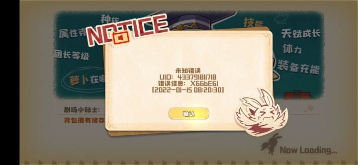 游戏进不去了还在战斗突然弹出来一个未知错误,点了确认之后就自动返回登录界面,再点登陆就一直卡在这个界面,我麻了呀꒦ິ^꒦ິ