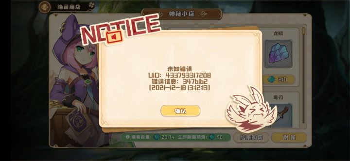世界树进入商店经常显示未知错误然后重启。我卡在这动不了。