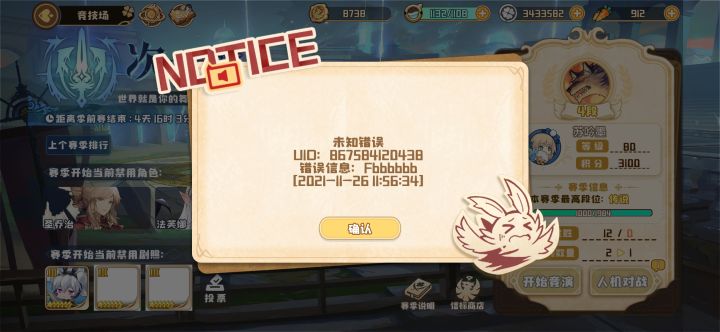 这就是我从昨天到现在的经历,我不知道一个小小的卡牌游戏是怎么整出这么多恶性bug的,你萌整出的bug只要出现就登不上游戏,连玩都不给玩,我就笑了。