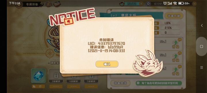 一点装备充能就未知错误了