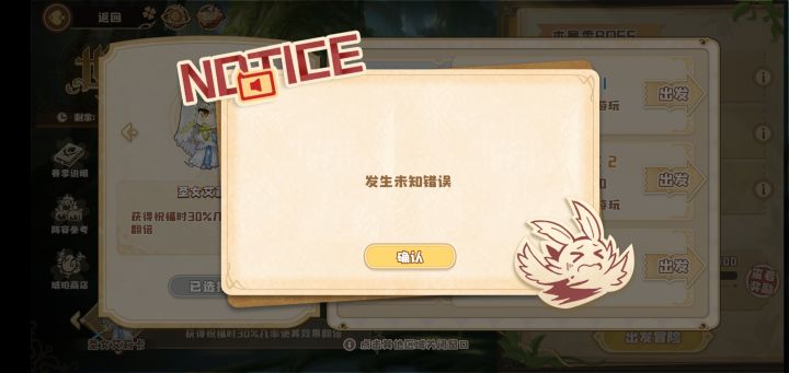 吉原猫召回bug各位在召回的时候切记要把队伍中的猫替换下去,我世界树爬塔阵容里面有吉原猫,然后世界树失败后退出了,现在吉原猫召回后,一点世界树就报错,进不了了,同样的问题还有素材收集,遗迹探险。血泪教训,现在已经联系客服已经在帮忙处理了。