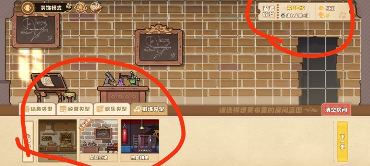 更新后,后宅bug明明我家具不够上面那个图标居然是亮的进入下一步后右上角没有查看收益锻炼类型房间布置后,可布置类型减少