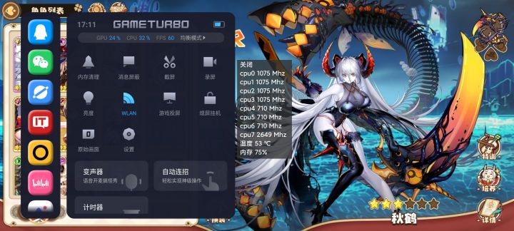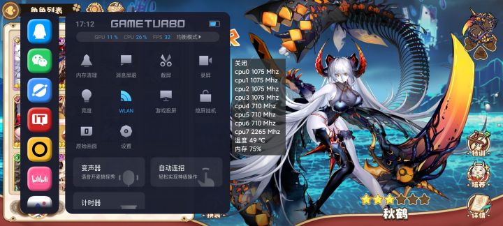 这次更新对游戏发热问题有了一定的优化,但是发热依然很严重😐x1超大核被积极调动,中核打酱油不出力😔的问题还存在图一均衡模式60fps,超大核2.6g图二性能模式60fps,超大核2.8g图三均衡模式30fps,超大核还是2.6g😂3个中核调度保守有负载一瞬间会上高频,场景一过马上0.7g打酱油。🙃反观超大核一直维持在高频无论什么负载都一如既往高频运行