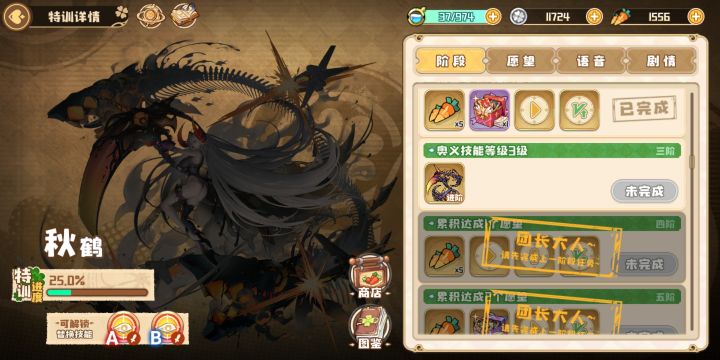 技能一键升级,特训第三阶没反应过来。。。秋鹤变成废物。。。