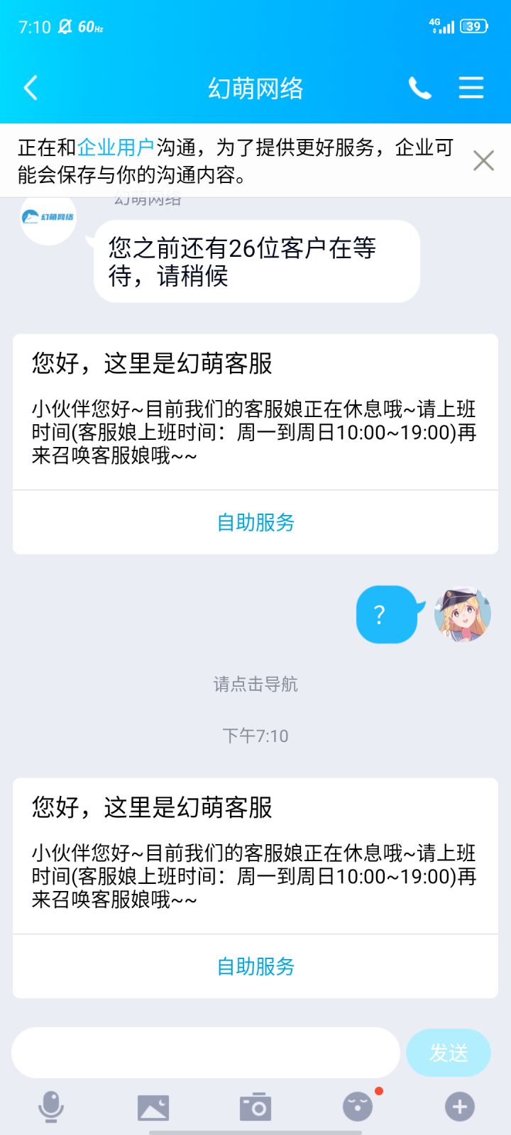 你游更新实名,把我们一些玩家更新成游客算了,然后,你游客服排队我也忍了,那么现在!你游客服下班了是什么意思,我们这些玩家就光等着吗?你游会不会给补偿给我们这些玩家,等一个官方回复