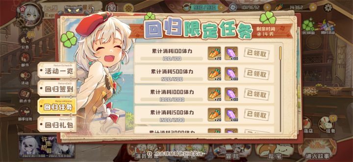 为什么我今天刚回归回归登陆和回归任务就都是已经完成的状态不能领奖励了啊。
