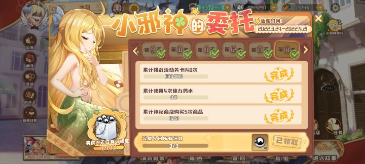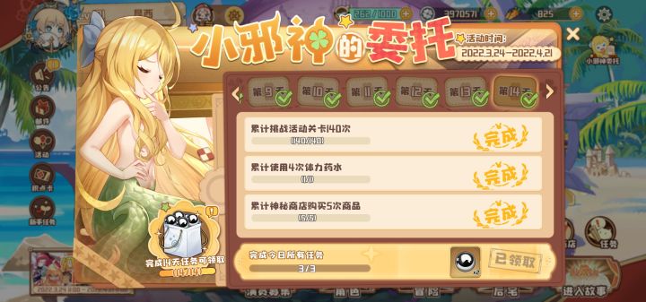 小邪神活动14天任务完成12颗钢珠领不了啊,我还以为我游戏卡bug了,来来回回退了好几次,原来不止我一个人啊😅