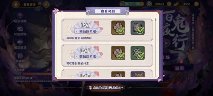 入坑第八天今天36级了把百鬼的探索经验奖励拿完了商店估计是拿不了多少了,世界树随便探索了几下,主线前面几天都在摆烂刷碎片所以目前刷到这里