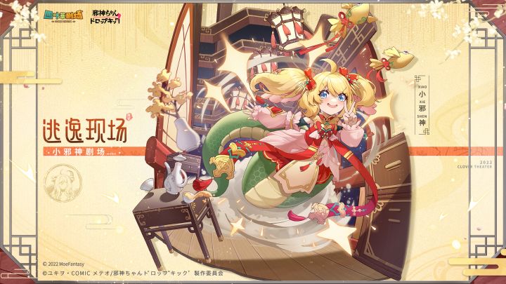 【联动限定SSR演员】小邪神小邪神是被百合铃以召唤阵从异世界的魔界召唤到人间的上位恶魔。这次因为她无意中画出传送阵,结果把大家传送到了索米尼亚大陆。来到四叶草剧团以后,小邪神想靠挟持团长号令剧团,但都不出意外地失败了。在吃了一两次苦头之后,小邪神不再选择硬碰硬,老老实实在剧团里呆了下来。《四叶草剧场》×《邪神与厨二病少女》联动即将开启!联动爆料持续放出,敬请期待!