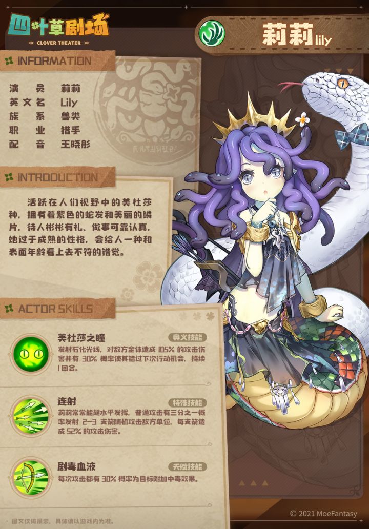 关键词:淑女活跃在人们视野中的美杜莎种,拥有着紫色的蛇发和美丽的鳞片,待人彬彬有礼、做事可靠认真,她过于成熟的性格,会给人一种和表面年龄看上去不符的错觉。