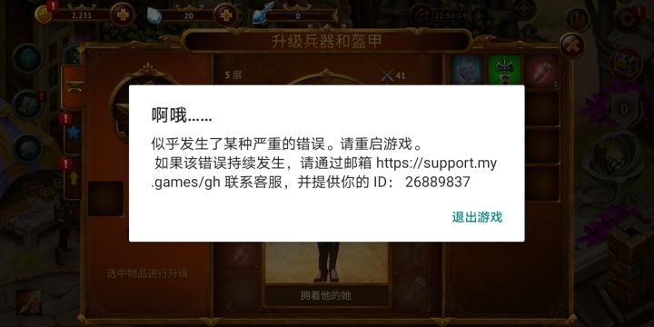 升级不了兵器和盔甲,怎么搞,官方上点心啊,游戏不错,经营不行啊。