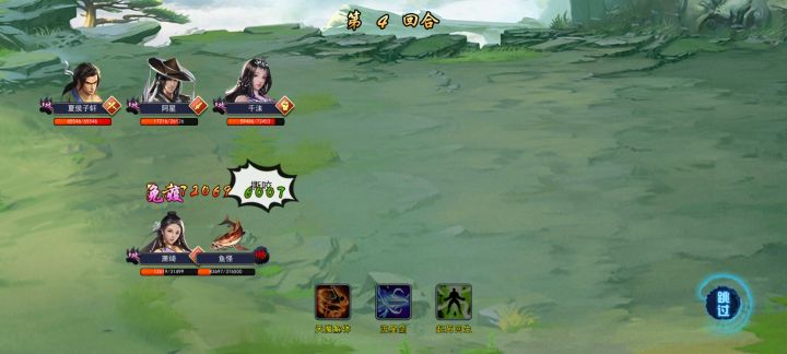 蛇形玉佩要打两波敌人黑衣人我没截图,刀攻击在5w以上就可以试试了。主要说第二波水怪,对面阵容是113。总血量将近40w,极高的反震。我是刀嗑药腊八粥和吐蕃酒,飞花加天魔,内力3600。身上有一部分反震免疫,一共80,随从都是减防和眩晕全员龟猪。刀不死一步一步配合虎子献祭,不难有惊无险😁😁😁