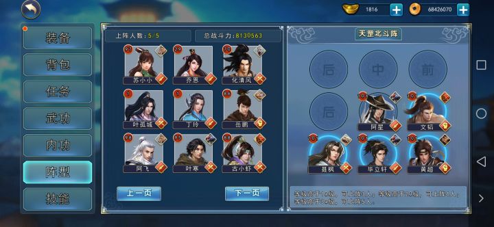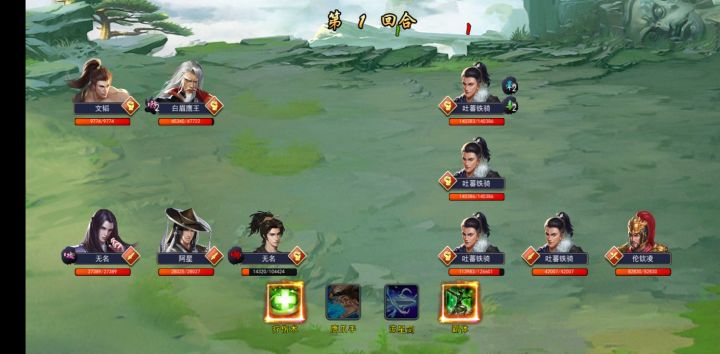 目前主线的最终boss,是吐蕃将军伦钦凌。如图,伦将军阵型为113,下路三个武功分别为弹指神通,独孤九剑,血魔神刀。上面两个士兵高反震,极高防御(甚至完全免伤)这个阵容可能会让很多玩家头疼,但伦钦凌其实并不难打。楼主是143w战力过的,阵容如下:打伦钦凌,主要是必须速度解决下路三个怪,刀修大约150暴击可以暴最下面的拳,但上面两拳过于强悍,硬砍难以破防,于是便有了如上阵型。三拳两剑,阵型2