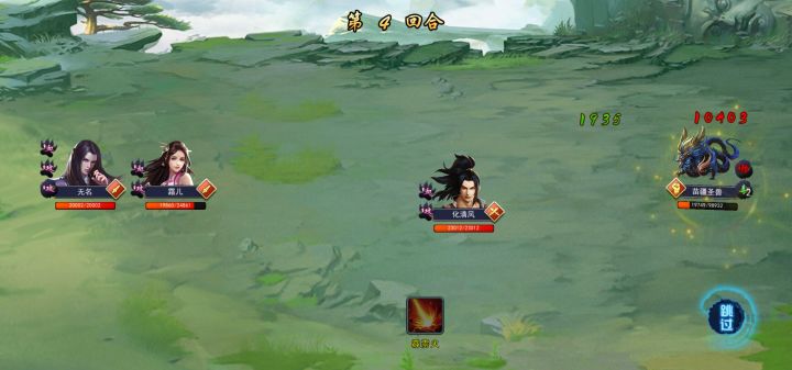聊一下我的思路,先看攻略都是反震剑过的,也没想什么直接养了反震霜儿,不带宠物大概反震60,直接中间顶着,但发现一个大问题。先不说反震概率多少,就算出现了反震最多震一半血,而且后续打不到圣兽血持续回满,而中间的肉始终打不掉。后来我发现圣兽就只有最后的伤害高,其余的根本打不动我的拳主,于是我转变了自己的思路,先把中间的中间那个杀掉(阿星打二真的强,无名菜鸡除了帅一点屁用没有)。于是我的阵位如下注意,