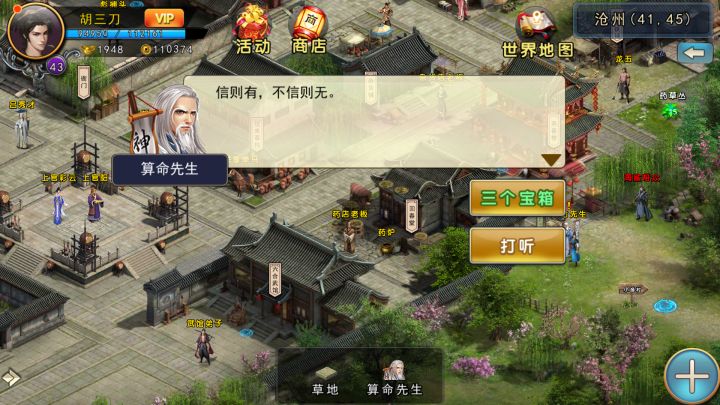 又是一个无用的小攻略游戏初期的陨石就是用来换高宝的,除了虎子的理想,还有一个任务也能得三个陨石,而且十分简单,任务NPC如下图,大概是沧州主线过了就能接,毕竟有两个宝箱在嵩山和全真,找到箱子打开,里面是三张明信片,交任务他会问你是什么地方,还有一个选择是“不知道”,选哪个都一样,都是三个陨石,只是对话有所不同