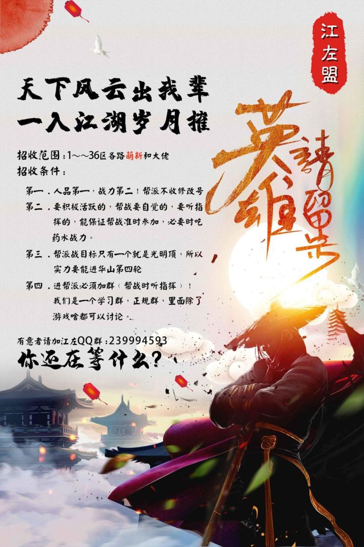 1-36区 江左盟 持续招人中! 现在已经合区,招收华山四轮及四轮以上的活跃玩家,一起冲击光明顶!大家来水群也行,😁😁