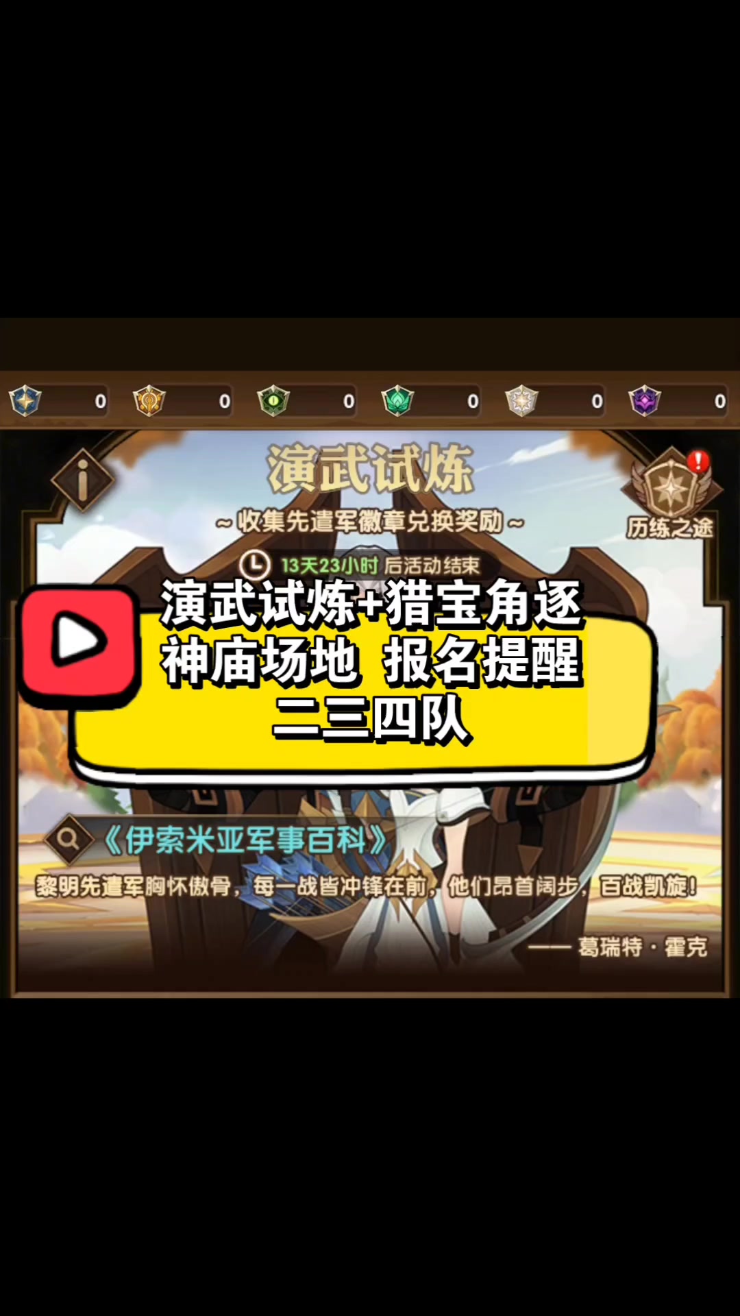 演武试炼+猎宝角逐(神庙)开启提醒