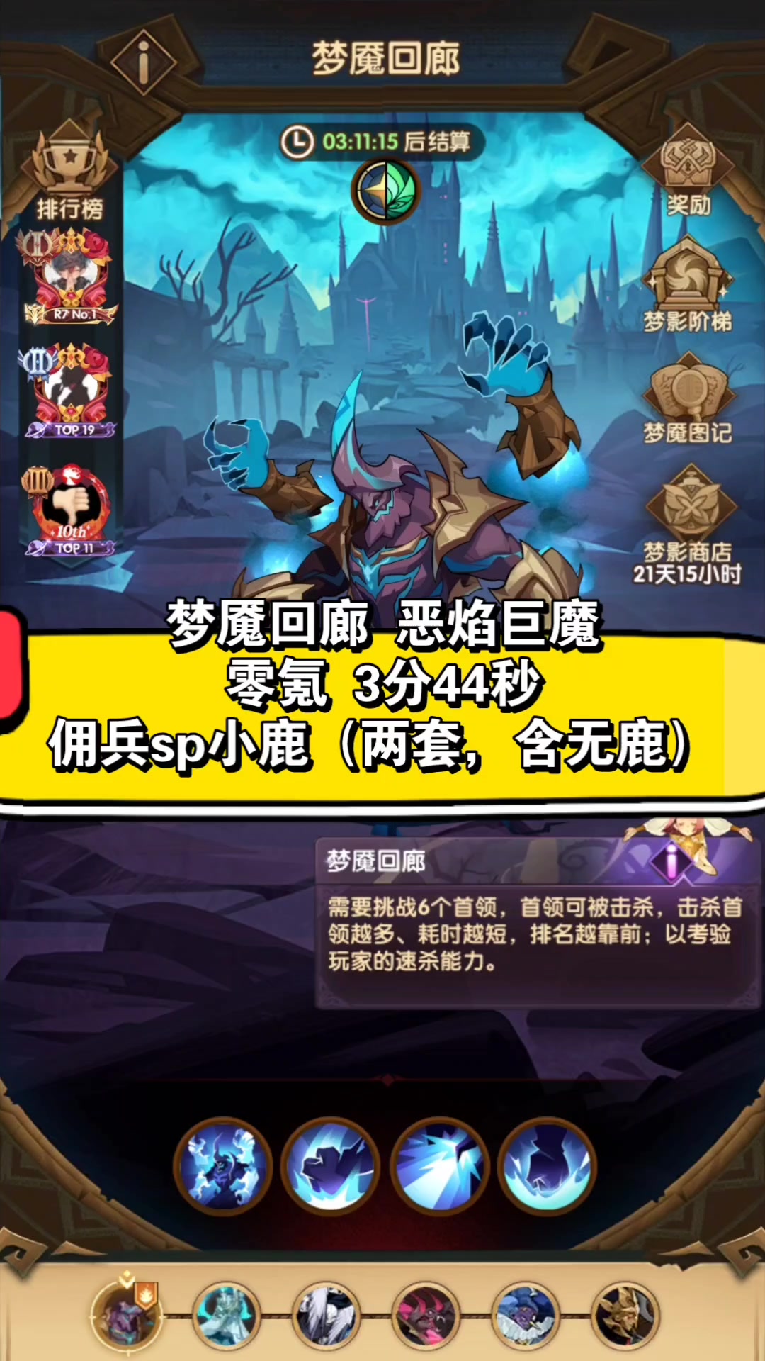 剑与远征 梦魇回廊 3分44秒 佣兵sp小鹿 零氪流逆