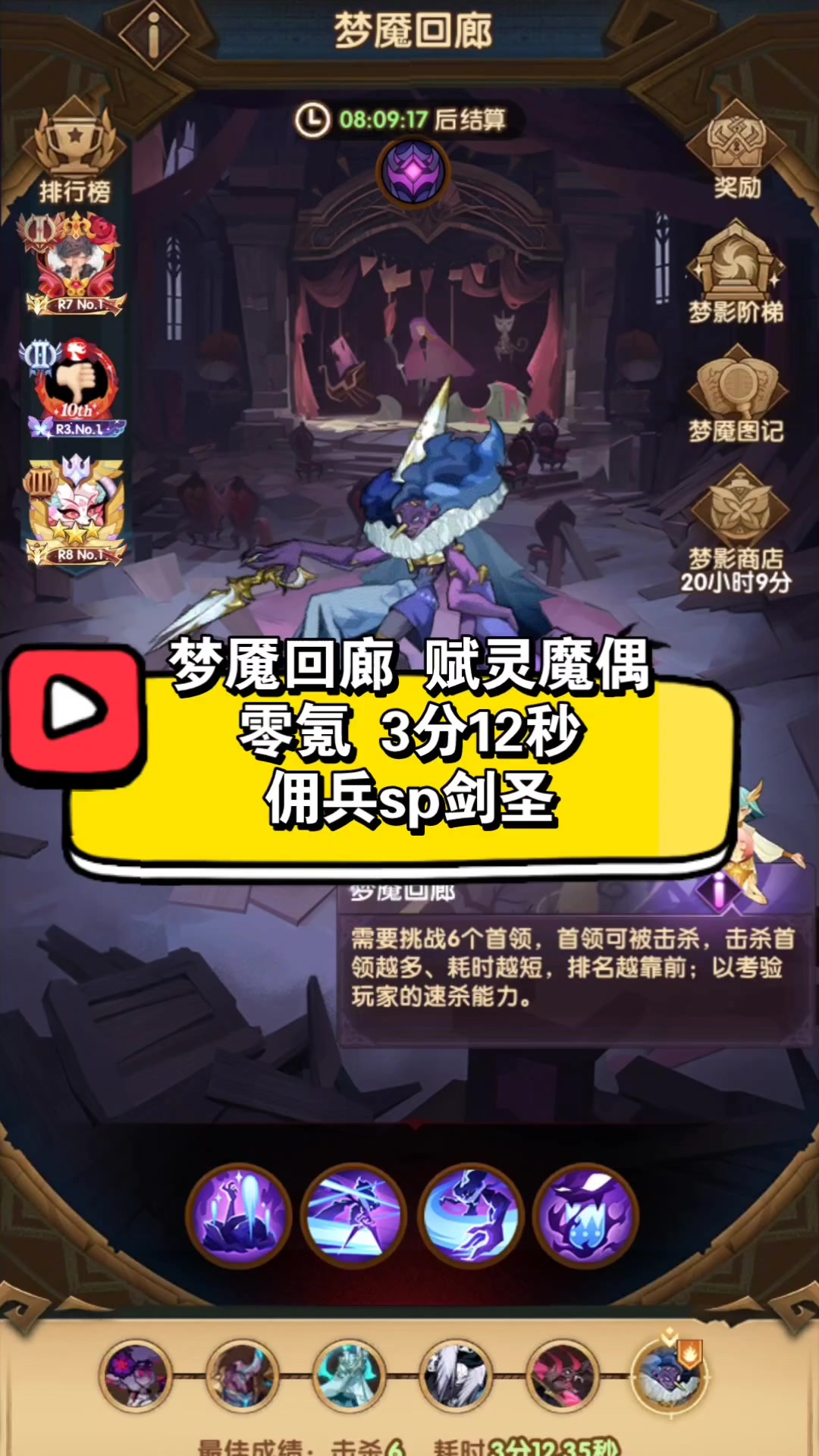 剑与远征 梦魇回廊 赋灵魔偶 零氪 3分12秒 佣兵sp剑圣