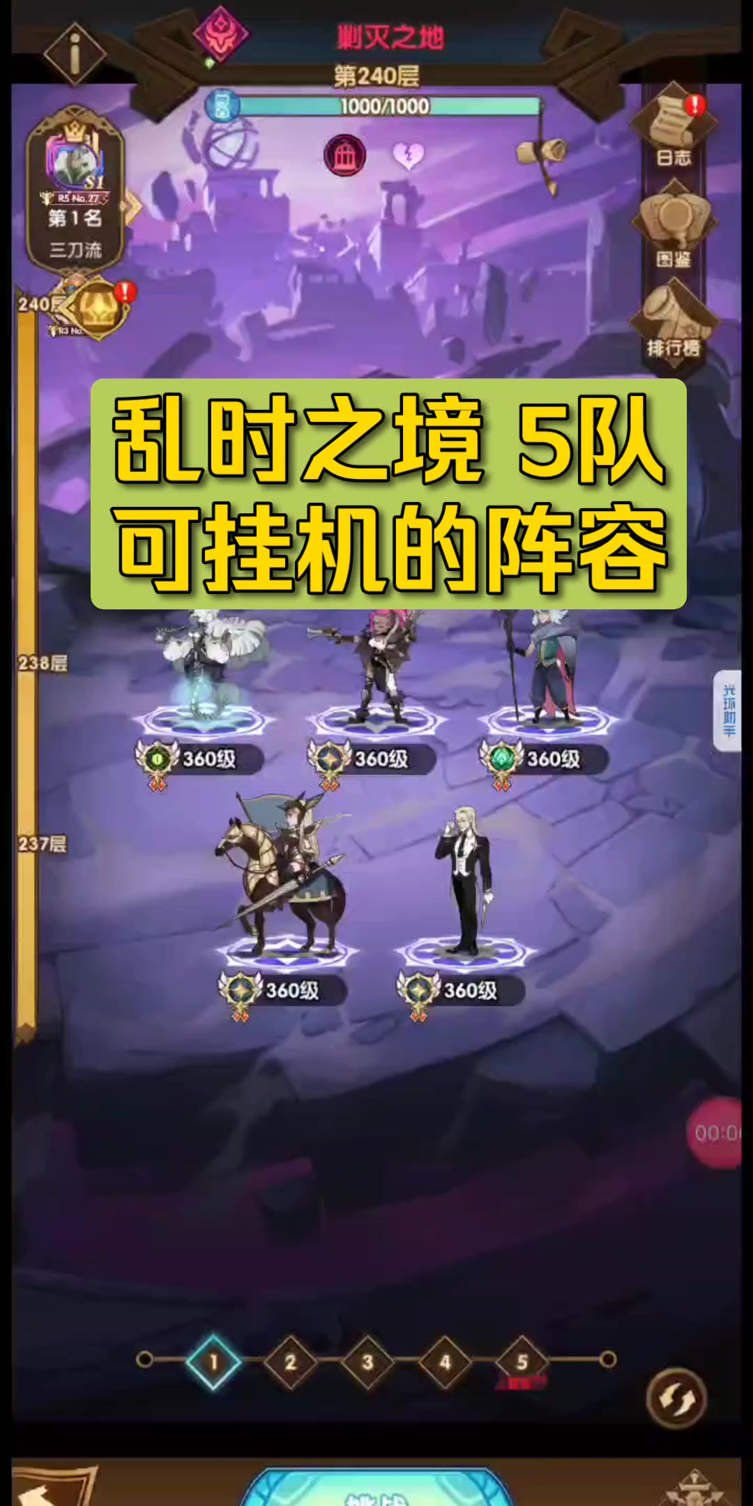 乱时之境 5队,可无损挂机的阵容。#攻略#剑与远征#乱时之境