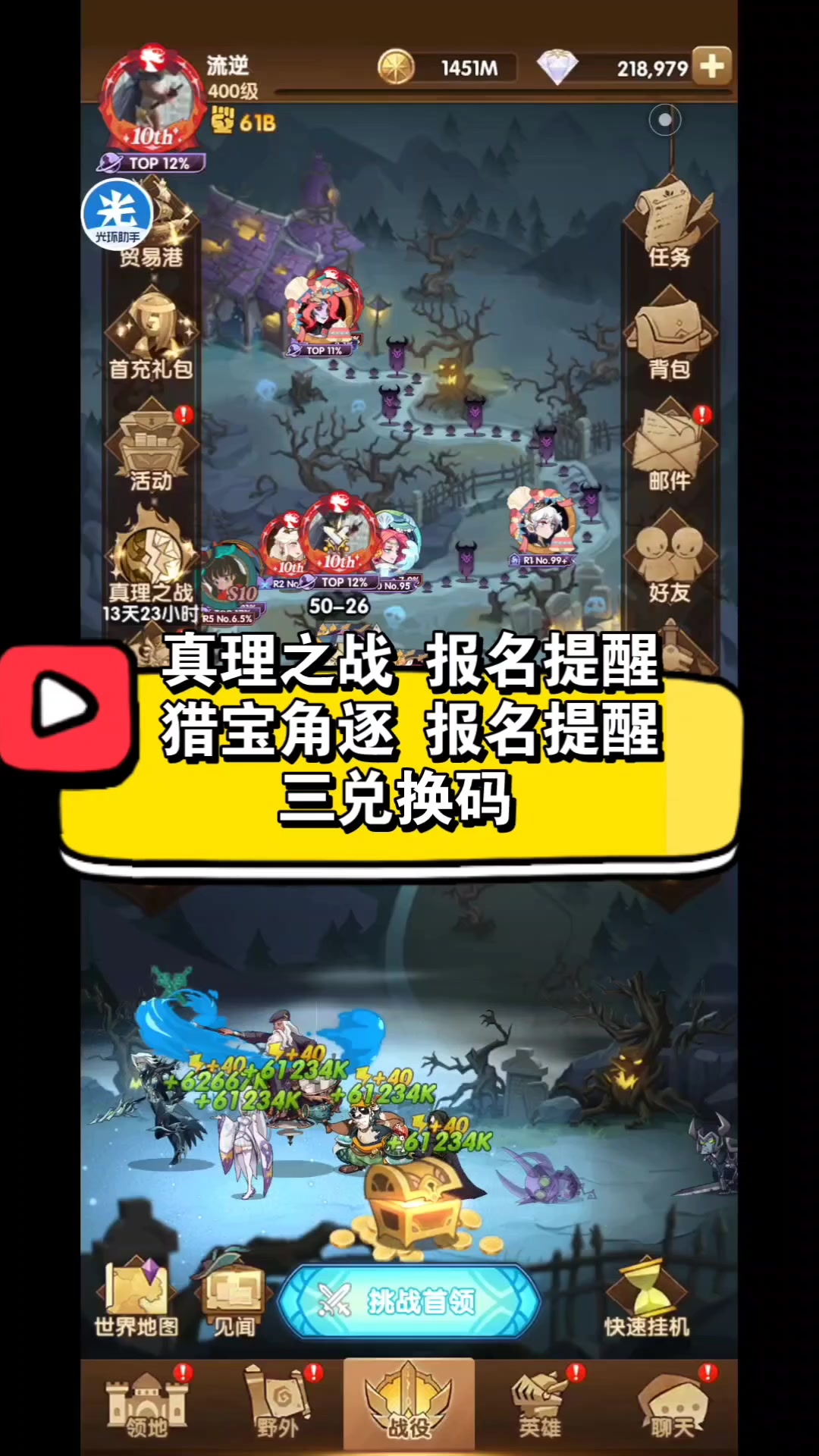 剑与远征 真理之战+猎宝角逐,报名提醒,三兑换码