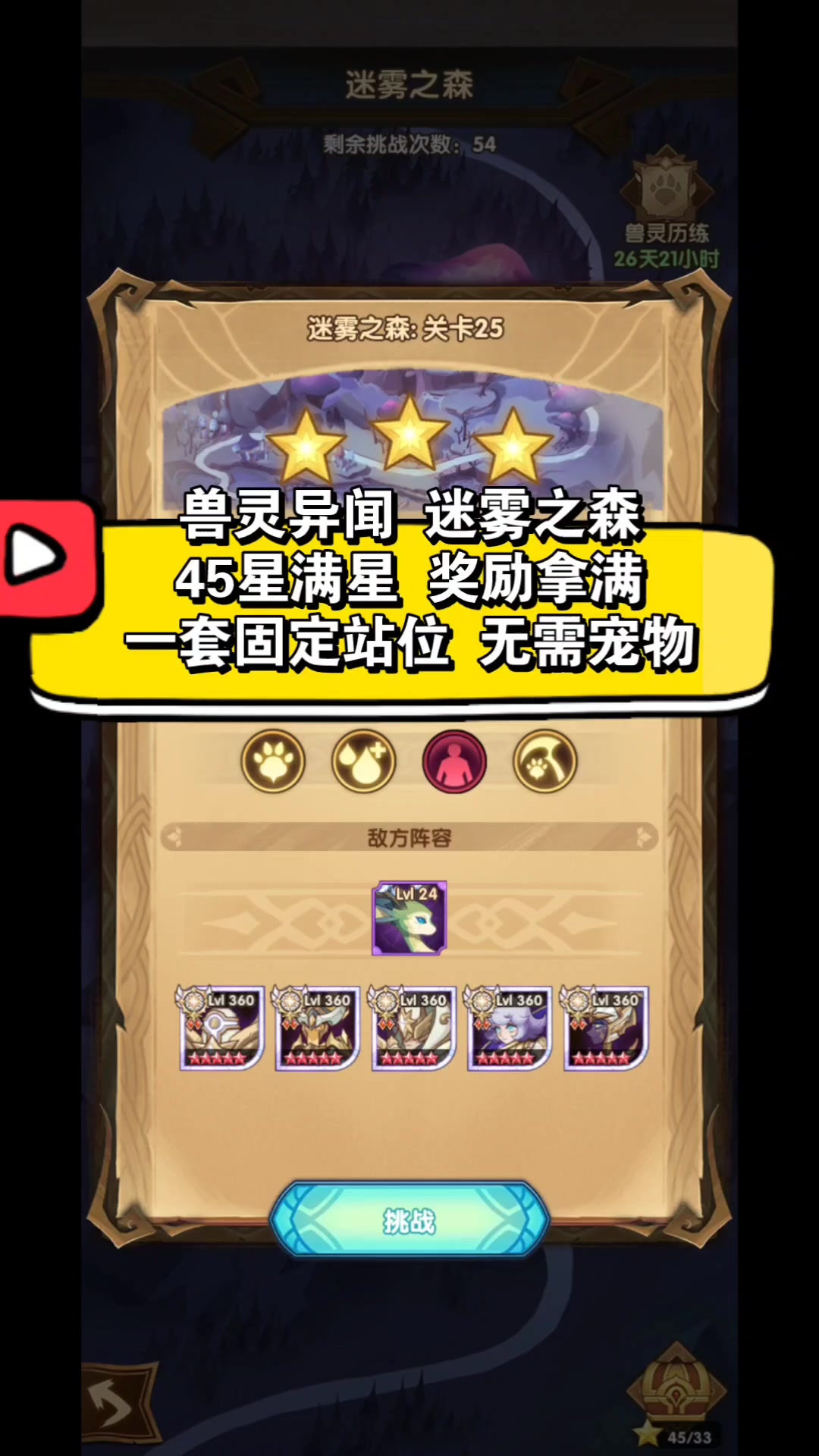 剑与远征 兽灵异闻 迷雾之森 45星满星 奖励拿满,一站到底