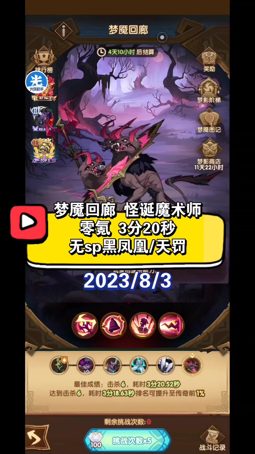 剑与远征 梦魇回廊 怪诞魔术师 3分20秒 零氪无sp黑凤凰