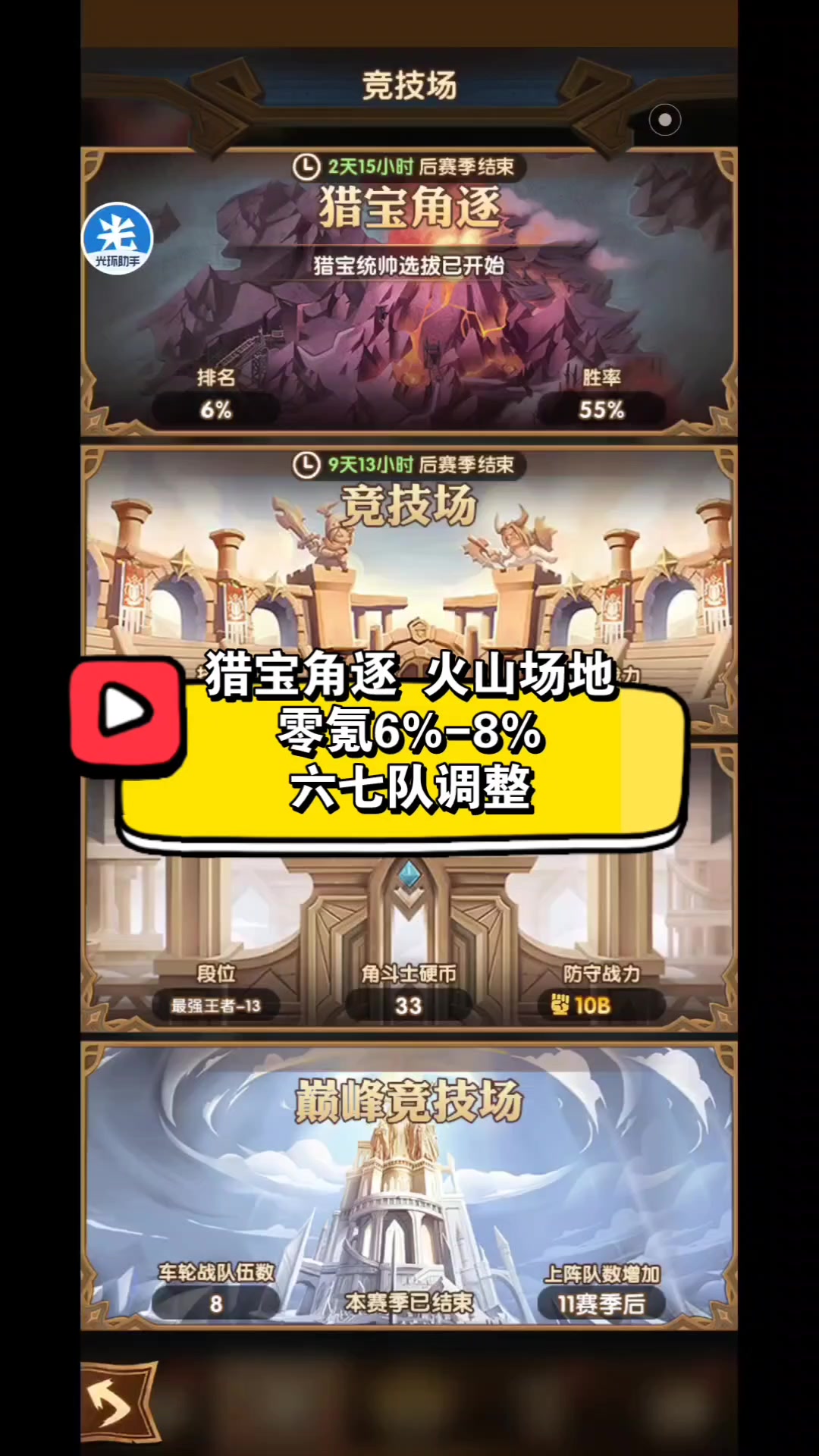 猎宝角逐 火山场地 零氪6%-8% 六七队调整分享