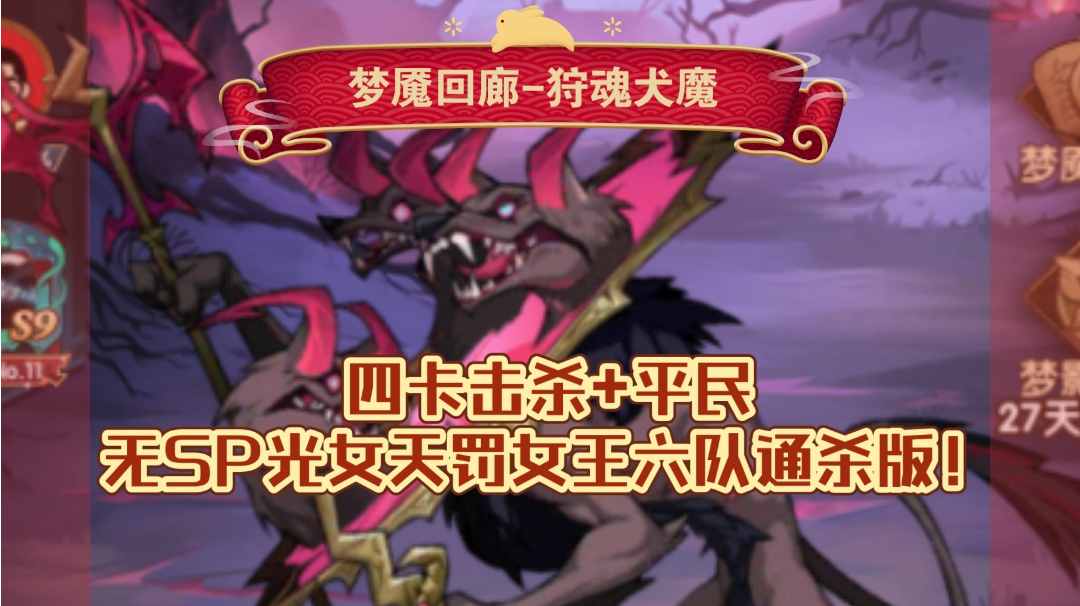 梦魇回廊--狩魂犬魔 四卡击杀+平民无光女天罚女王速杀六队版