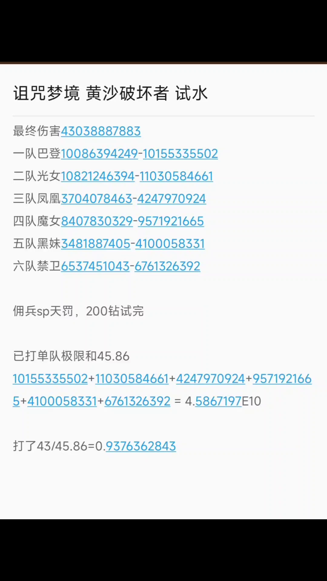 诅咒梦境 黄沙破坏者43B(极限46B)无15鹿 零氪流逆