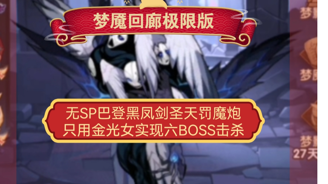 梦魇回廊 极限版六BOSS击杀!无SP巴登天罚黑凤剑圣魔炮