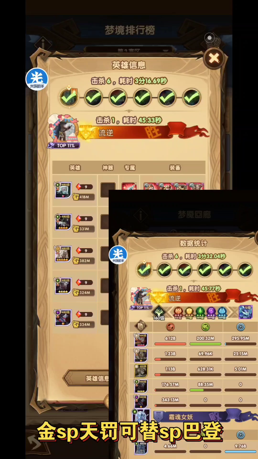 高配有SP天罚可用这套阵容 一队:新神 新亡灵 修补匠 SP天罚 恐魔 (宠物 猫头鹰) 首领:剑圣 蜥蜴 炼金 贞德 蛮角 (宠物:蝴蝶) 二队宠物用:水豹15大于12级年兽