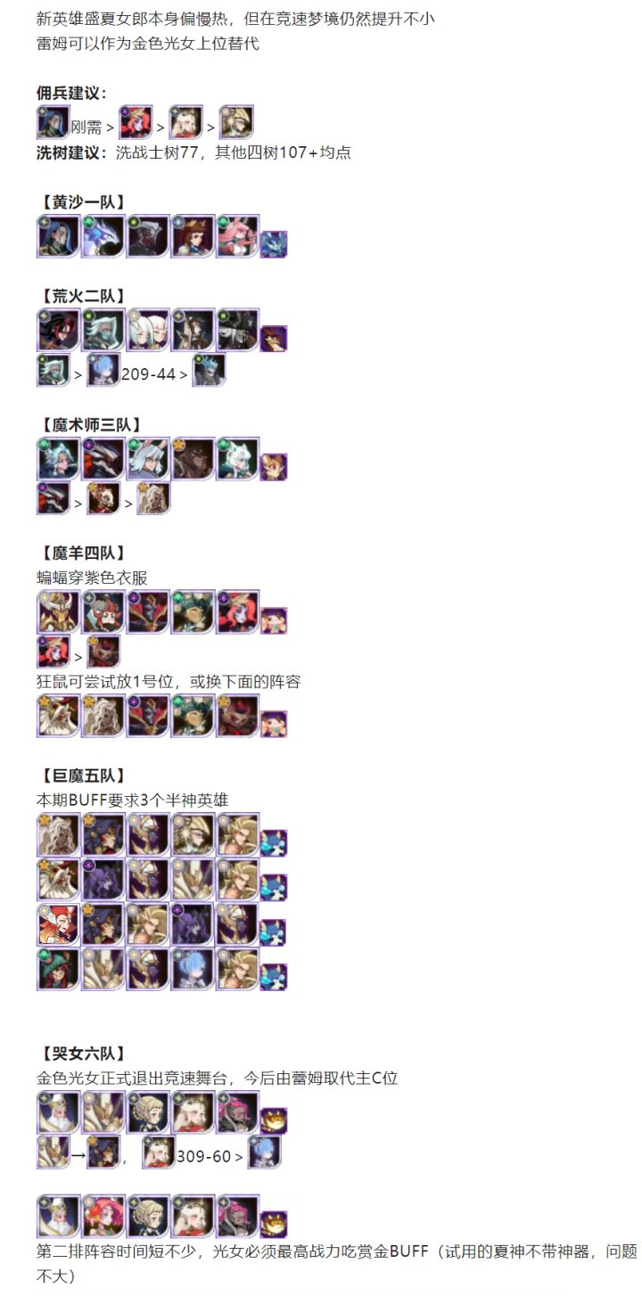 剑与远征猎宝角逐582区2~4队平民阵容推荐