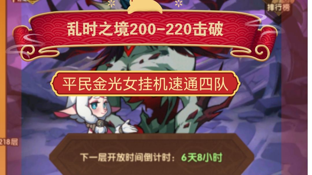 剑与远征 乱时之境平民挂机速通四队200-220层20分钟