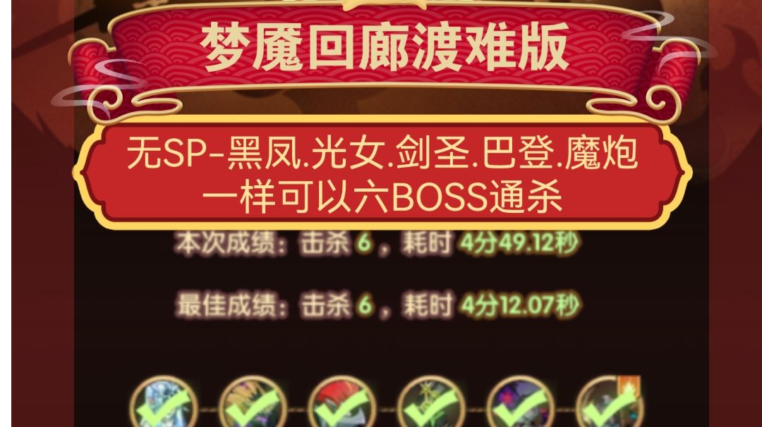 剑与远征 梦魇回廊渡难版!无SP黑凤.光女.巴登.剑圣.魔炮
