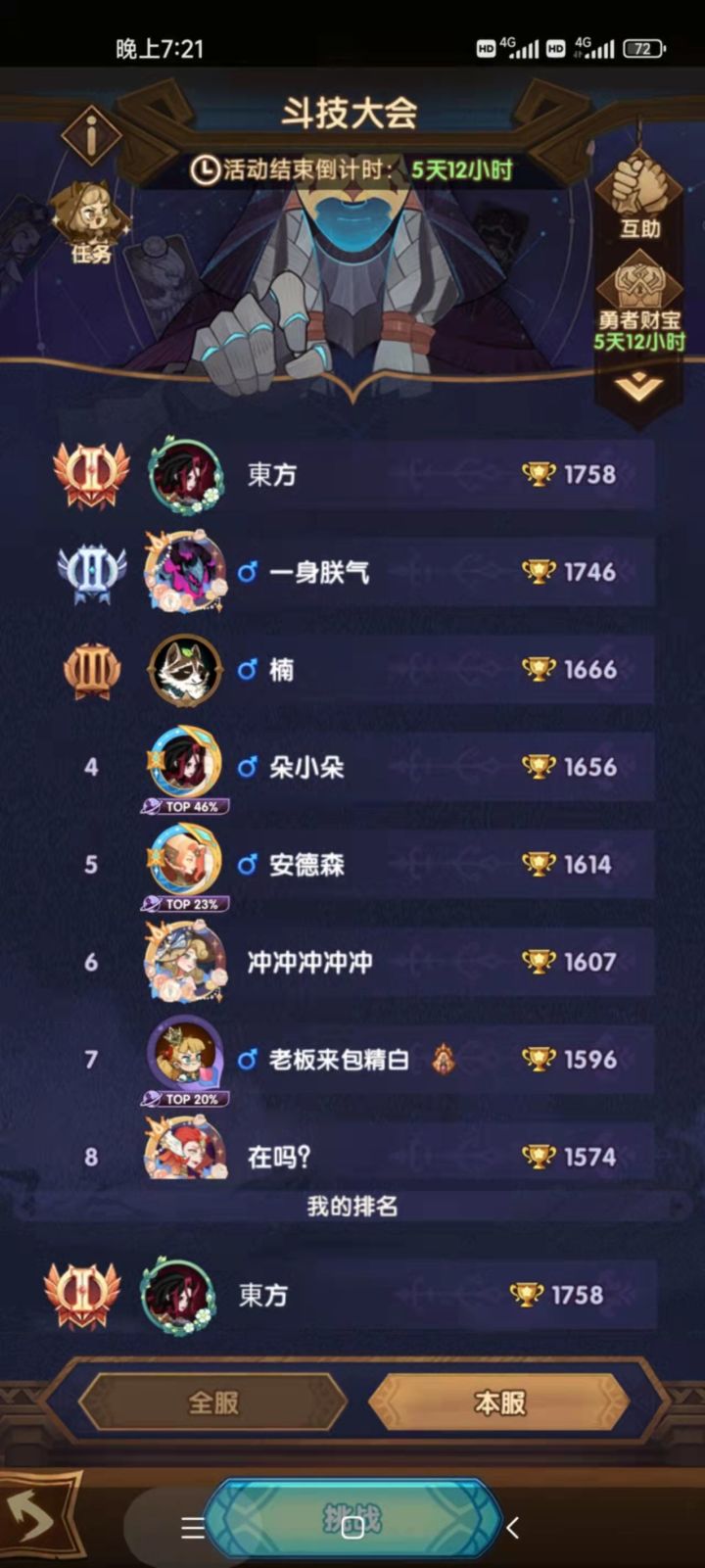 斗鸡大会的吐槽,从本服第一名到降分1295,在今天再重新启航打到现在,个人建议每天三场轻松愉快,感谢此活动让我远离长时间玩游戏,内心太多想吐槽但还是算了。
