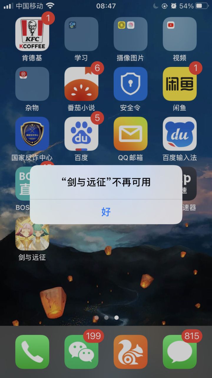 怎么解决啊?大佬们?今天点击游戏就显示:剑与远征不可再用 玩不了!!
