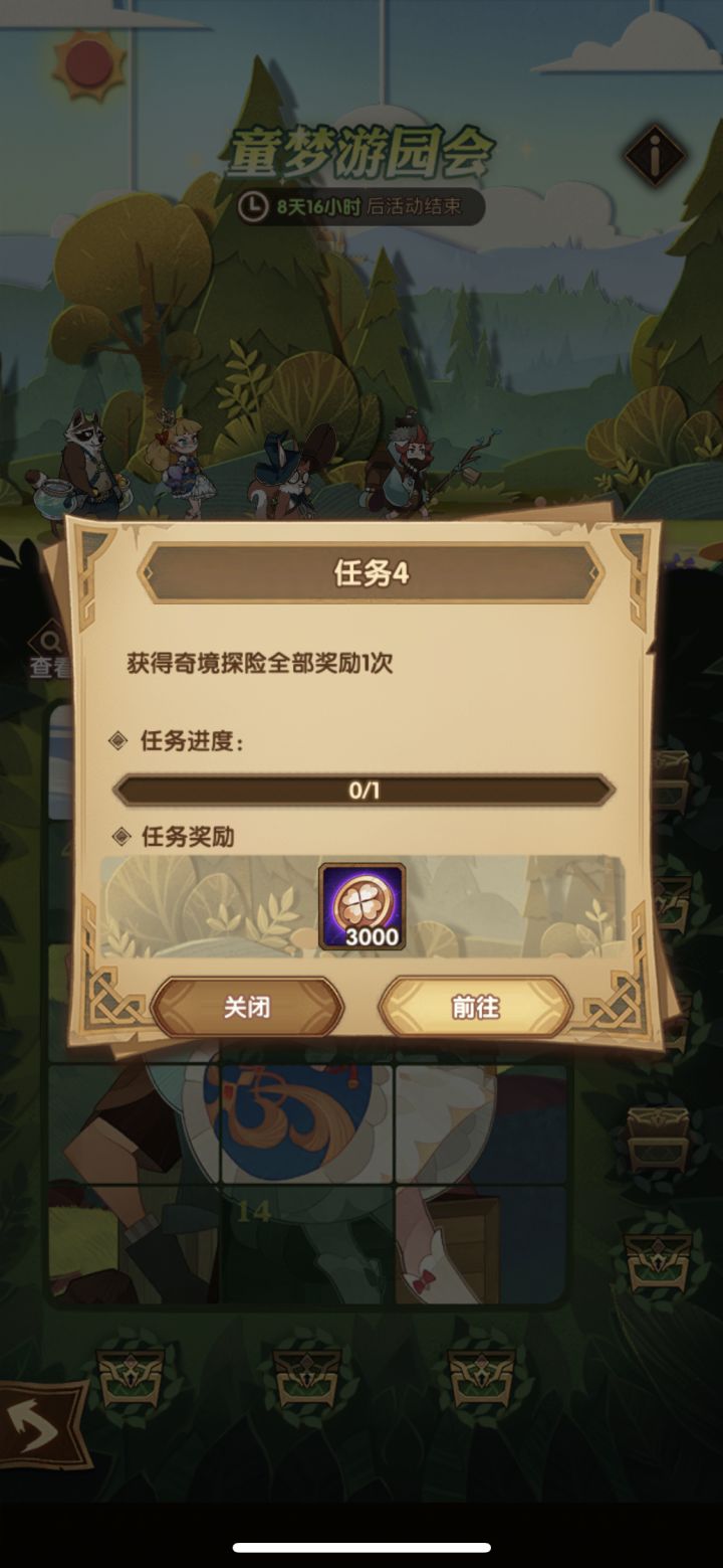最新春游活动写着奇境幻想完成全部奖励一次 问题它昨天出来我就推完了 这怎么不算完成呢?