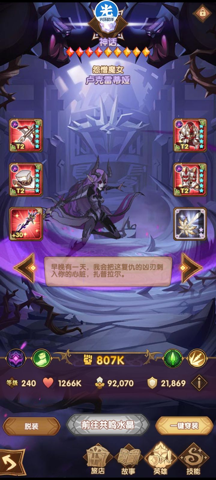 有一个小小的建议,请官方看一下。对于新手来说,前期装备很缺少,可能经常要多队推图,或者打种族塔。频繁脱装备,换神器,退出装备状态,返回英雄列表更换。-----“希望官方出一个方便我们更换装备的快捷方式,例如保存记录套装”看到的玩家如果觉得可以,点个赞顶起来给官方看到,这样对新手很友好,对我们频繁脱装备换装备的零氪玩家太又好了,(如下图,我可以把装备给其他种族临时用一下,前期只打造一两套敏捷,一两套力量,两三套智力,共计7套装备就可以在多队推图之前足够用了)