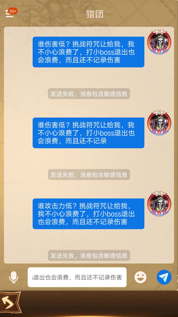 压根就没法文字正常交流,我很好奇怎么这些游戏都那么多敏感词,敏感词定义是什么?还有新出的活动,打一周目,我看差点伤害就可以直接打掉boss了,打算升一两件装备再来打,一退出,挑战符文没有了,伤害也不记录,你不记录伤害,那干嘛消耗符文?