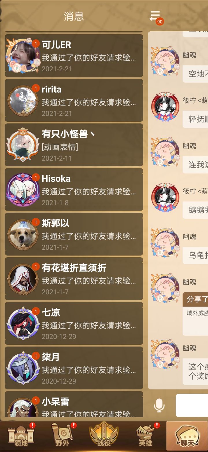 我不知道这是我一个人的问题还是其他人也遇到过,聊天里的消息一点开全是以前和别人的聊天,上次军团群聊,好友验证通过,全部删掉之后,下次打开游戏又全出来了,忍无可忍了@贝贝